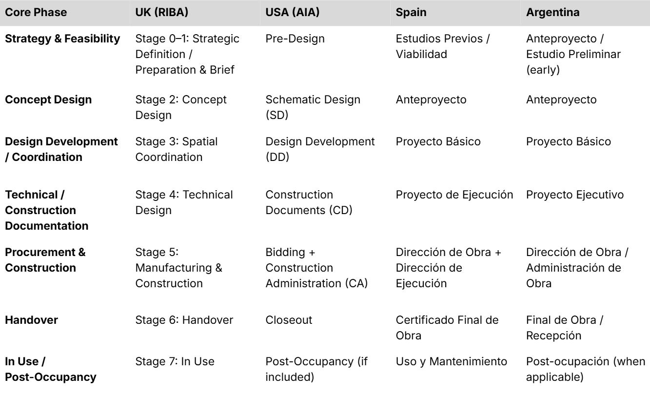 What changes from country to country is how these steps are named, structured, contracted, and priced.